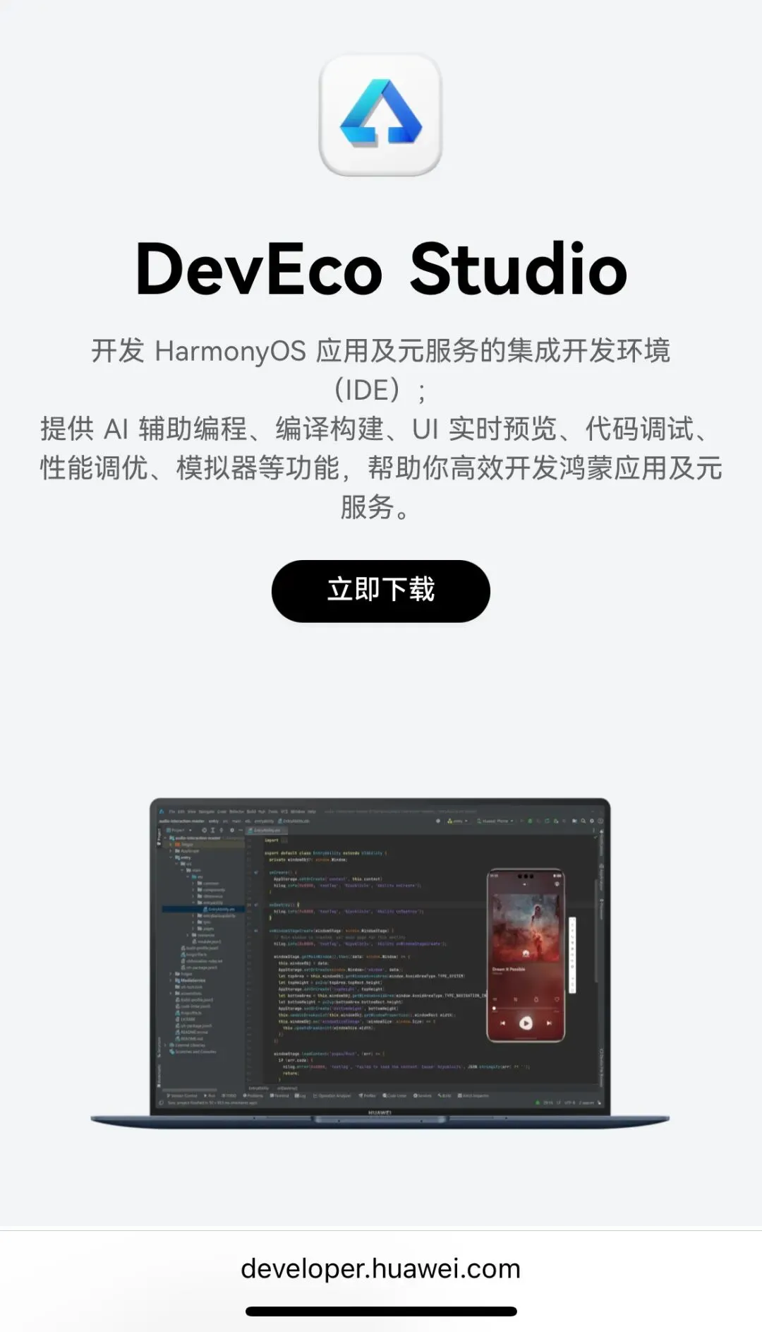 官网:https://developer.harmonyos.com/cn/develop/deveco-studio
