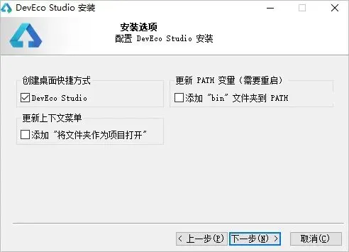 ◦勾选:添加到PATH、创建快捷方式、关联.hvigor/.hap