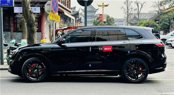 黑色悬浮Logo、全熏黑车窗饰条,还有五辐式熏黑轮圈。