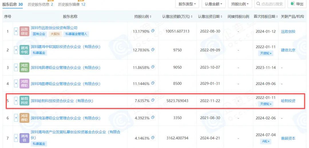股权结构上,深开鸿也与华为有着紧密联结。企查查信息显示,华为旗下的深圳哈勃科技投资合伙企业持有深开鸿7.6357%股权,位居股东前列。
