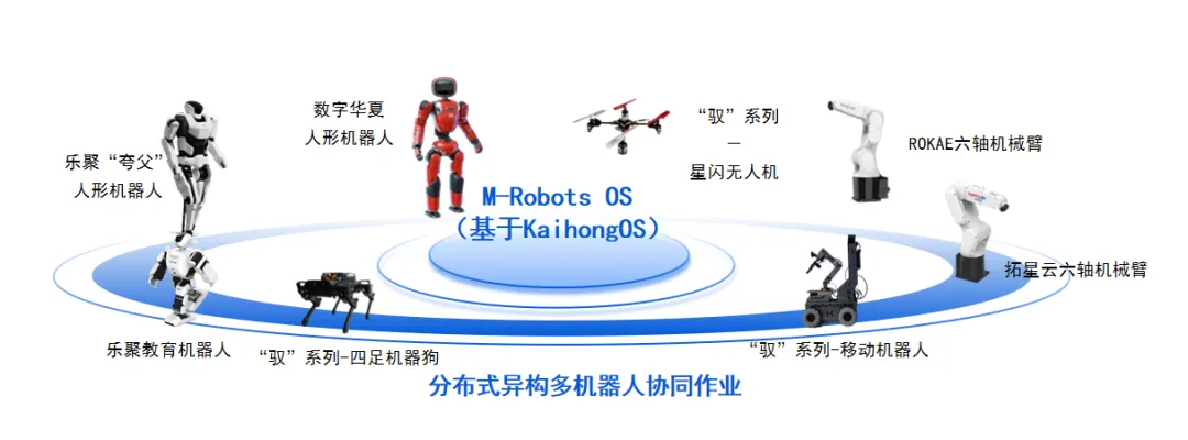 最具标志性意义的突破来自机器人操作系统M-Robots OS,这也是全国首个基于开源鸿蒙的分布式异构多机协同机器人操作系统。