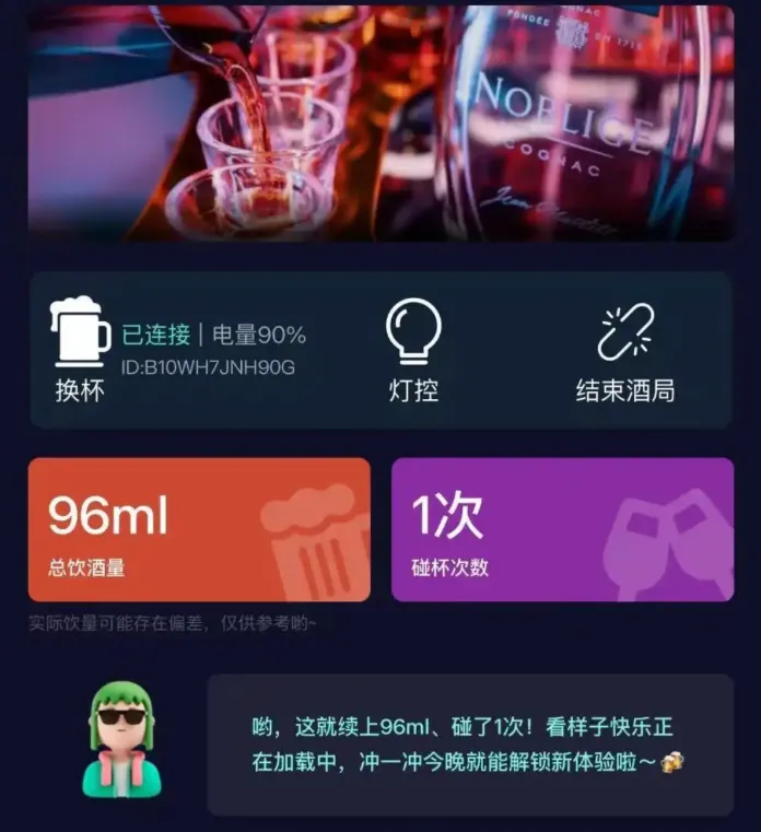 为丰富春节好友聚会这一保留节目,武汉推出了 AI 啤酒杯。杯中内置传感器与 AI 算法,能记录饮酒量、生成健康报告,超量还会亮灯预警。并支持 NFC 碰杯加好友,还能 DIY 灯光防拿错。