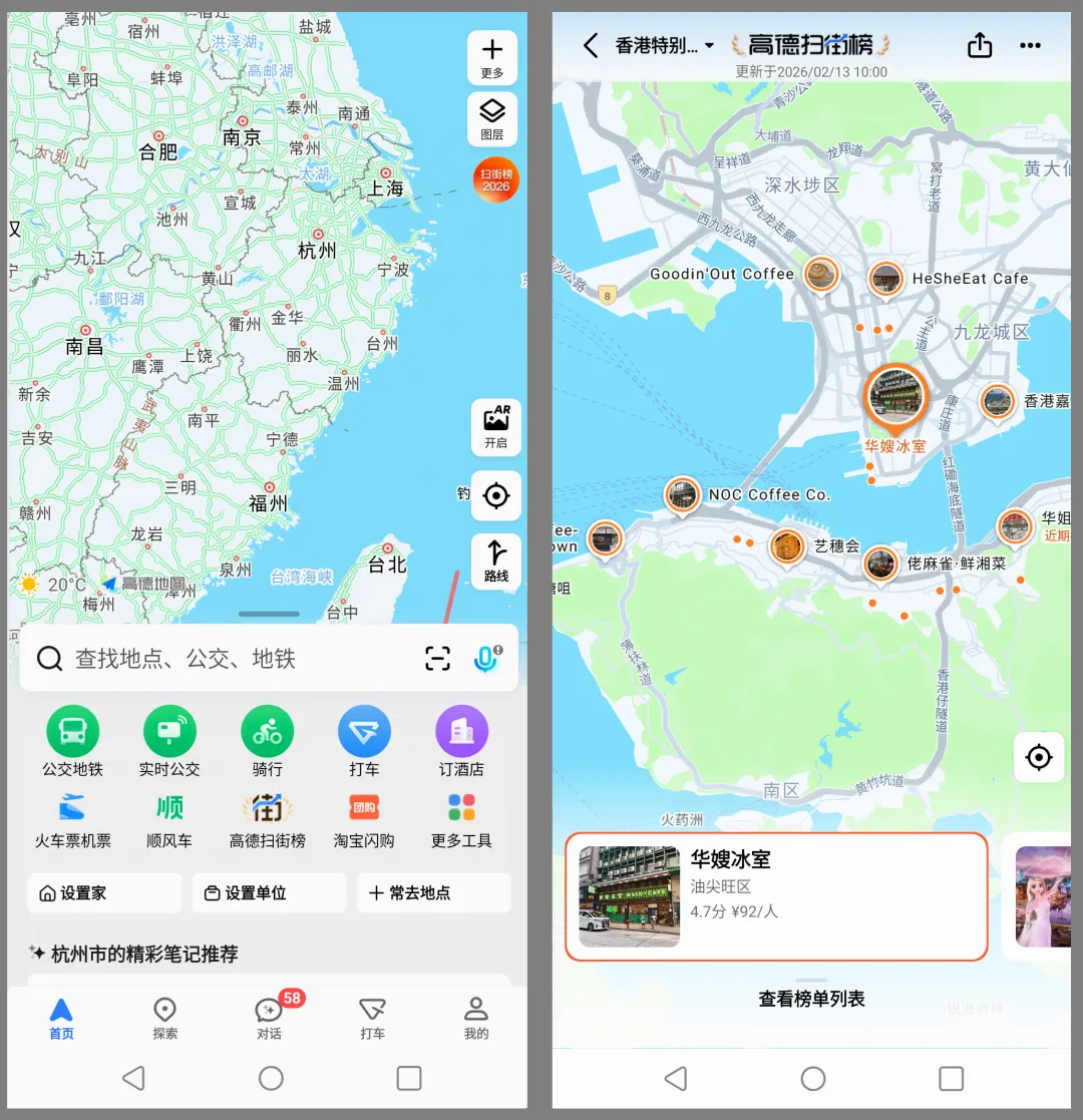 扫街榜是高德在2025年国庆前推出的,基于用户真实的出行数据,以及用户的芝麻评分,量化对商家的评价,其核心逻辑在于,好评差评比较容易刷,但大量用户的实际行为数据难以作假。扫街榜在我们到其他城市逛吃的时候很有帮助,现在已经更新到2026版。