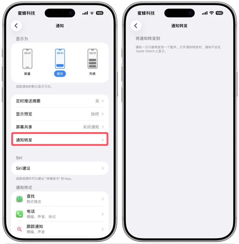 在 设置 >通知 >新增「转发通知」,可以将通知转发到第三方穿戴设备(手表或手环)。