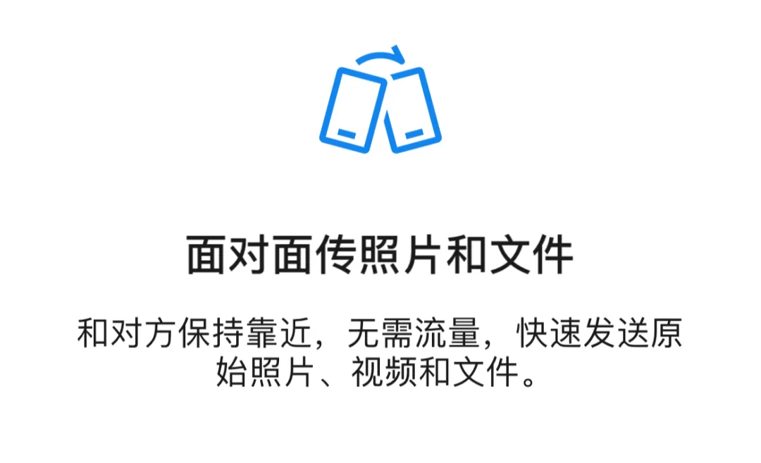 顾名思义,就是可以面对面扫码传输照片文件,而且整个过程不消耗流量,适合一些不想加好友就想单纯传个照片文件的情景,看来以后搭讪又少了个加好友的理由了。