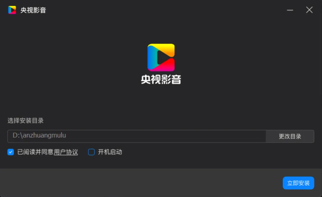 选择安装目录和是否开机启动,也可默认。点击"立即安装“