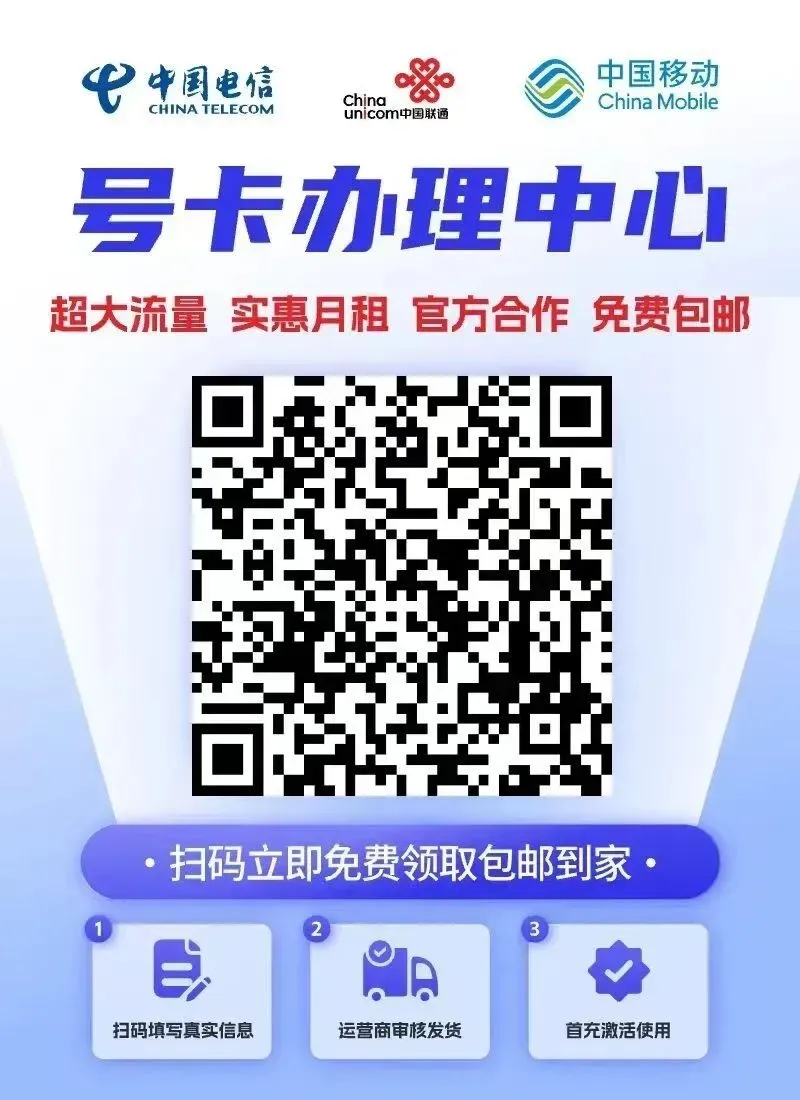 平时手机流量不够用,需要超大流量的朋友可以自己扫码领取一张流量卡,超大流量,超低月租。三大运营商自助选择,稳定又便宜,无任何套路,官方可查,扫码自助免费办理,包邮到家!