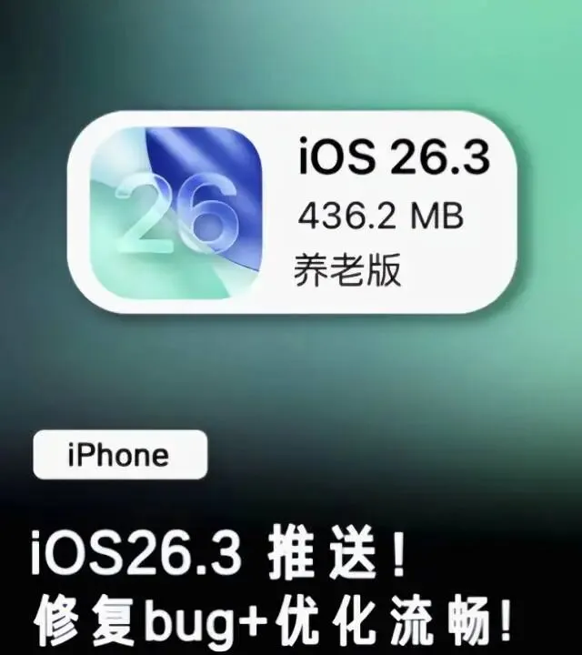 这几天,苹果向所有受支持的iPhone用户推送了iOS 26.3的第一个公开测试版。更新日志一如既往,列出了错误修复、安全补丁和少量新功能。然而,与几年前用户争先恐后下载描述文件的盛况不同,如今在社交平台上,更多看到的却是“更新了吗?有什么坑?”或者“养老版本是哪个?”这类谨慎的提问。