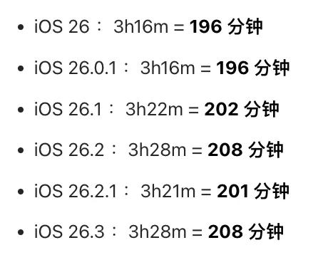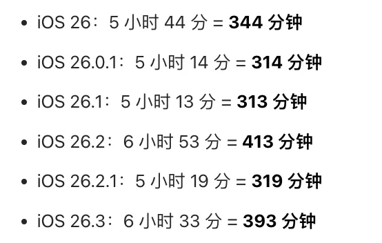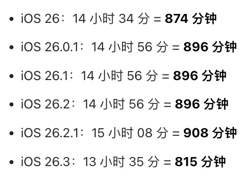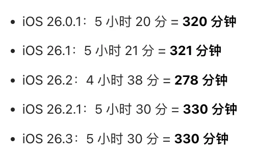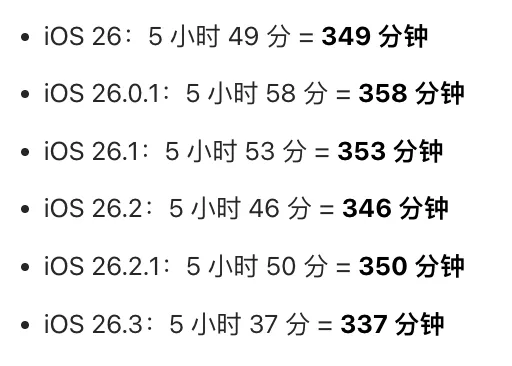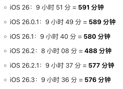 iOS 26.3 续航报告来了!有款 iPhone 续航大幅下降