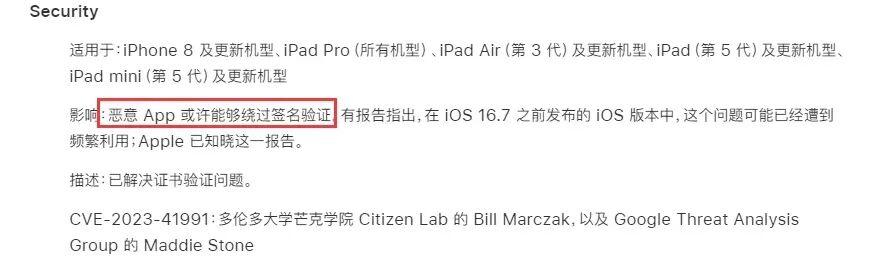 也得到 CVE ,此漏洞为 CVE-2026-20654 漏洞,能够一个应用程序导致意外的系统终止,支持 iOS 26.2.1 及更低系统。