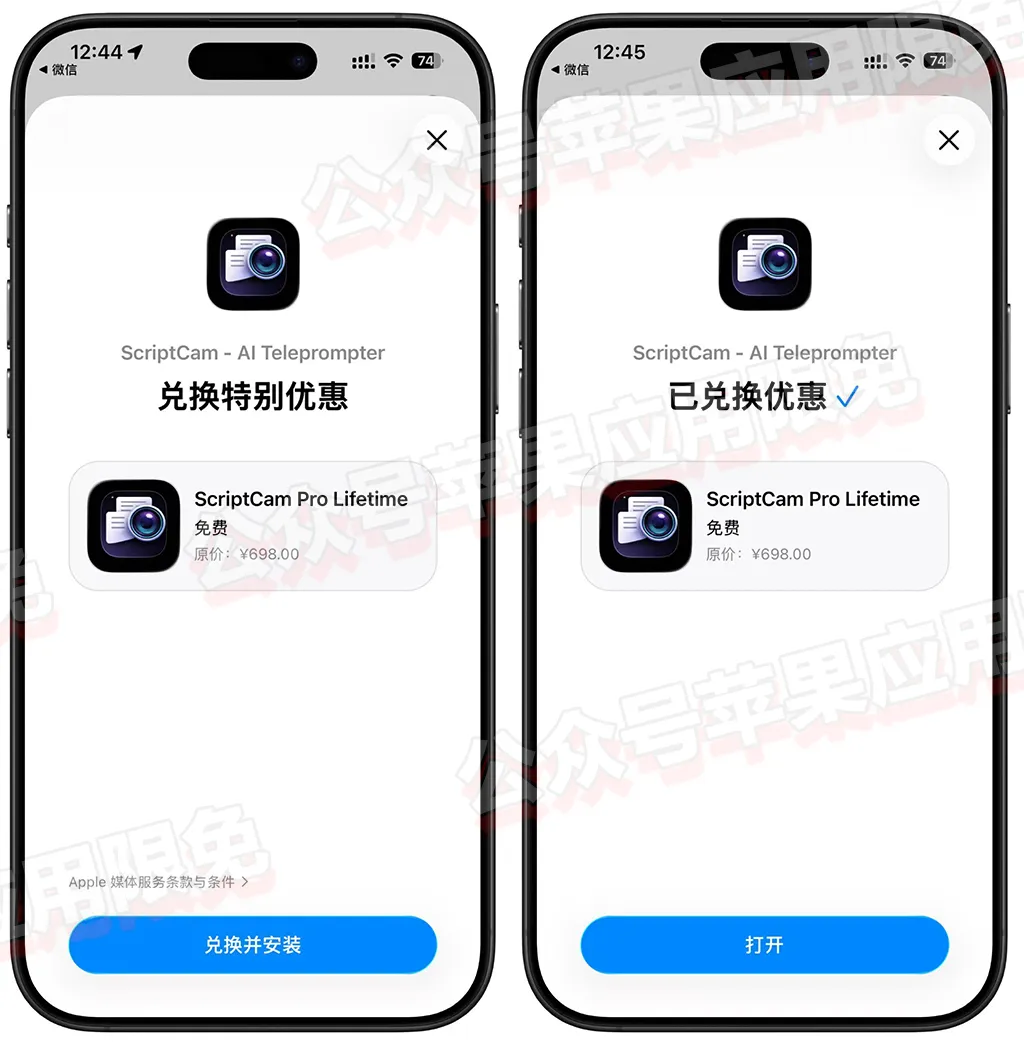 软件名称:ScriptCam-Al Teleprompter一款提词器。目前可以通过兑换码免费获取它的终身订阅,名额有限,如果显示无法兑换,说明已经兑换完了,设备需装有 iOS 15.1 或更高版本。