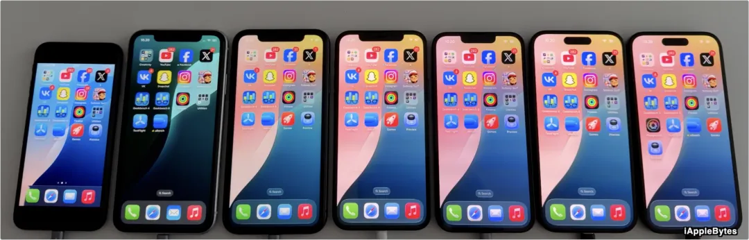 本次测试一共使用 7 款 iPhone,分别为 iPhone SE2 / XR / 11 / 12 / 13 / 15 / 16