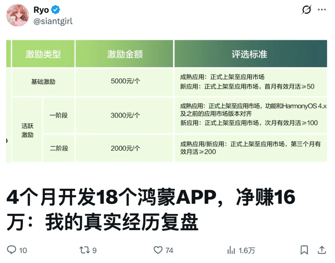 终于看到这篇复盘了,这个就是鸿蒙应用开发者激励计划。