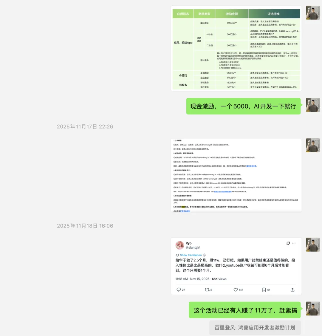 这次活动其实还是鸿蒙真的会发钱,发的还很多,并且一开始做的会比较容易,后面审核就严格了,鸿蒙收缩了补贴政策,甚至有些号还会被标记为黑号。