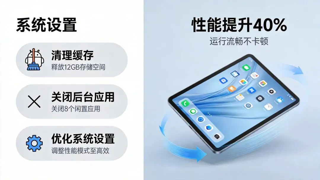 预算平板的卡顿往往不是硬件老化,而是系统臃肿和资源管理不当。根据2025-2026年的最新调研数据,大多数安卓平板的性能下降源于后台应用占用过多内存、缓存文件堆积以及不必要的系统服务持续运行。