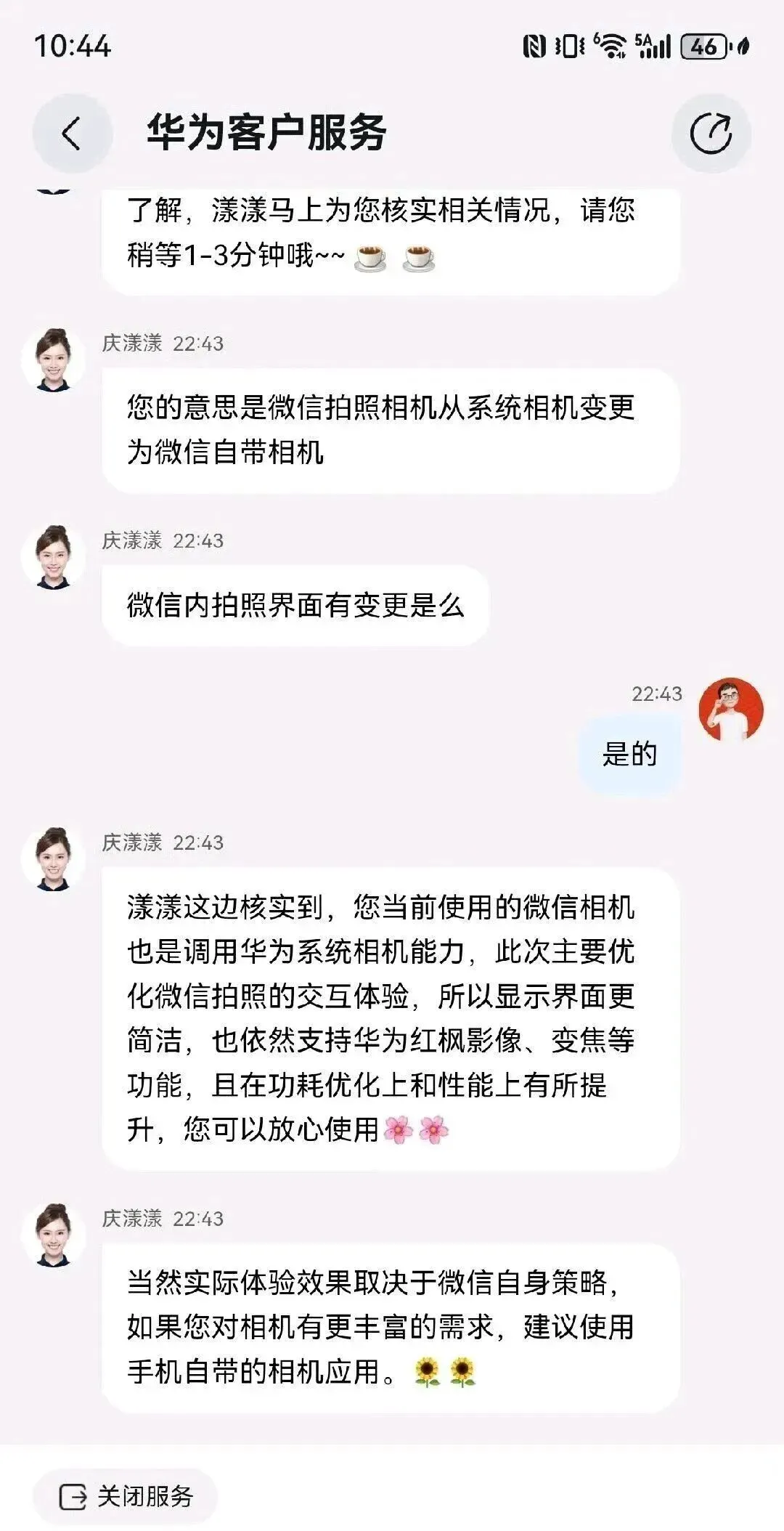 华为客户服务对此回应:微信当前的拍照功能依然是调用华为系统相机能力。本次优化主要聚焦于微信拍照的交互体验,使界面更加简洁清晰,同时继续支持华为红枫影像、变焦等功能,并在功耗控制与整体性能方面有所提升。实际体验效果仍取决于微信自身的策略配置。如对拍摄功能有更高或更丰富的需求,建议优先使用手机自带相机应用。