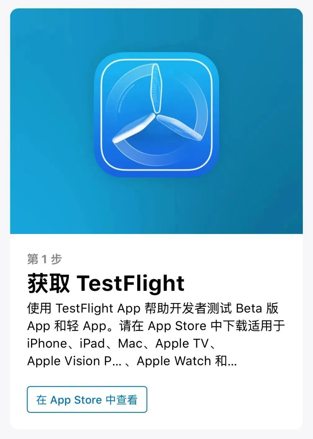 ② 安装TestFlight成功后,会自动跳转到安装页面,点击安装就可使用了,如提示需要兑换码,返回之前的网页,点击里面的"在Testflight中查看",即可跳转点击安装: