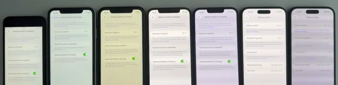本次参与续航测试的 iPhone 共有 7 款,包含了从 A12 到 A18 的多款芯片,分别为: