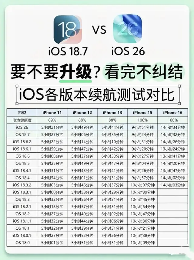 放在今天来看,设备性能够用,想试前沿的 AI 和新的交互,升到 iOS 26 值得,旧设备也在服役,看重稳定和时长,停在一个你熟悉的经典版本也行,这选择没输赢,只有合适。