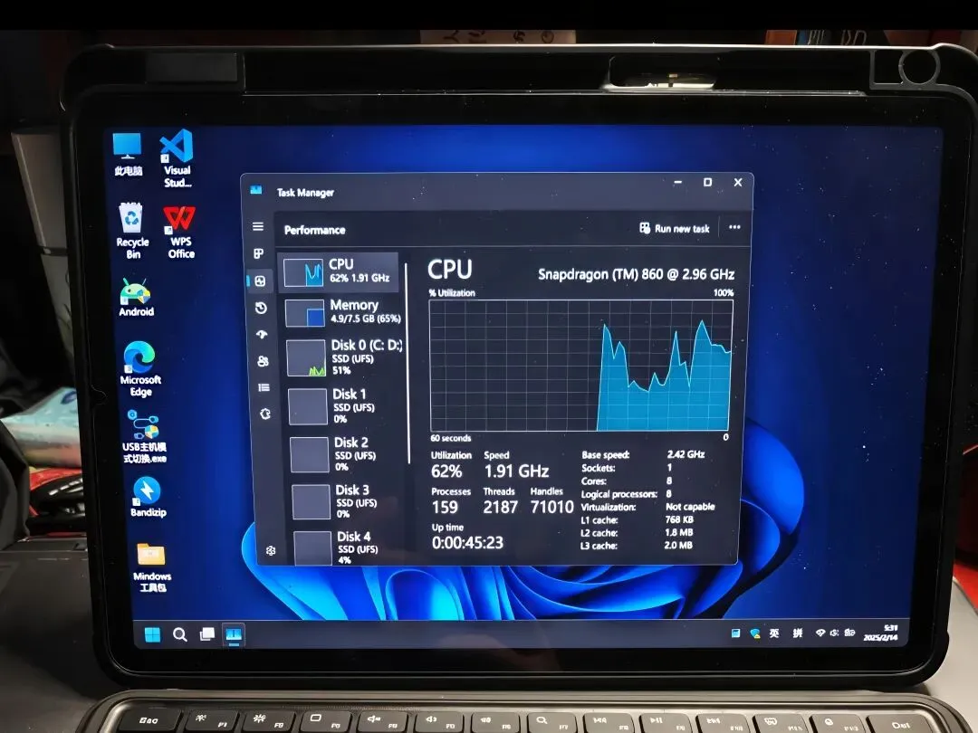这才是整个方案最核心的魅力所在。它并非简单地将两个系统塞入一台设备,而是通过清晰的场景分工,实现了“1+1>2”的效果。当需要真正的生产力时,启动Win11。接上蓝牙键鼠,你得到的就是一个功能完整的Windows桌面环境。从专业的WPS、Office到各种行业软件,从复杂的数据分析到编程开发,PC端广阔的生态任你取用。窗口化的多任务管理效率,远非任何移动系统可比。