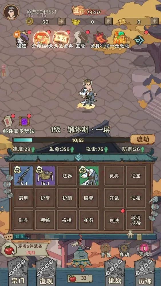 4、通过历练挑战也会获得开箱用到的材料,完成各种任务之后就可以直接渡劫来提升境界了,通过快速点击屏幕可以加速渡劫进度