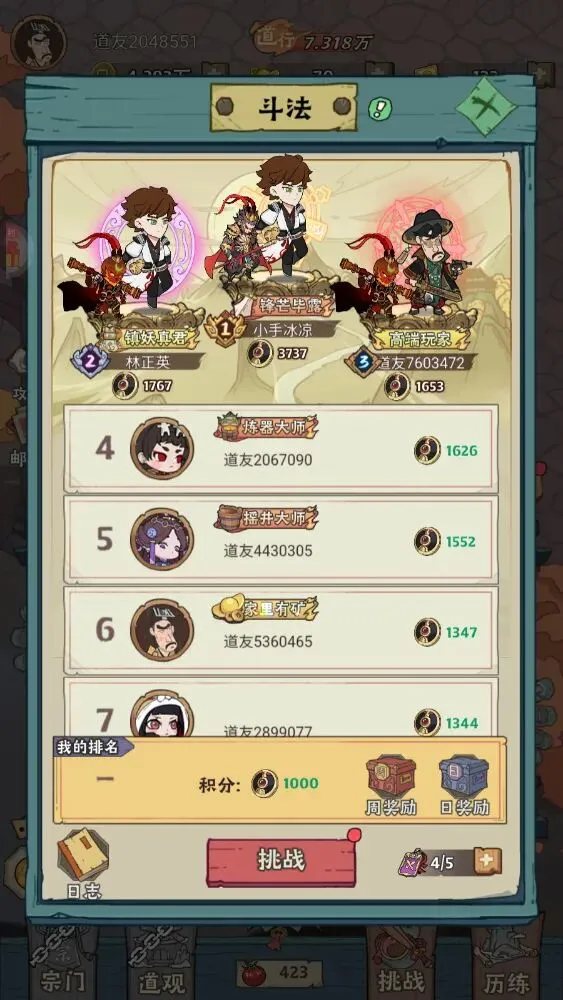 5、下面会解锁挑战副本,需要先参与斗法战斗,挑战到历练2-10后会解锁魔君副本,不同副本挑战会获得法相丹、唤灵符等材料