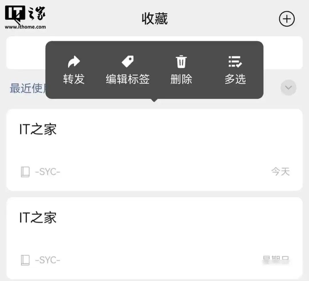 收藏功能的变化挺大,以前的收藏只能单条操作,现在用户可以在“我-收藏”里多选、编辑,聊天界面点加号直接收藏当前消息,这个逻辑跟企业微信、钉钉类似,就是让内容在不同场景之间来回移动,比如看到有用的信息,不用先转发再收藏,一步到位,说实话这种细节改动起来不难,但用起来舒服很多。