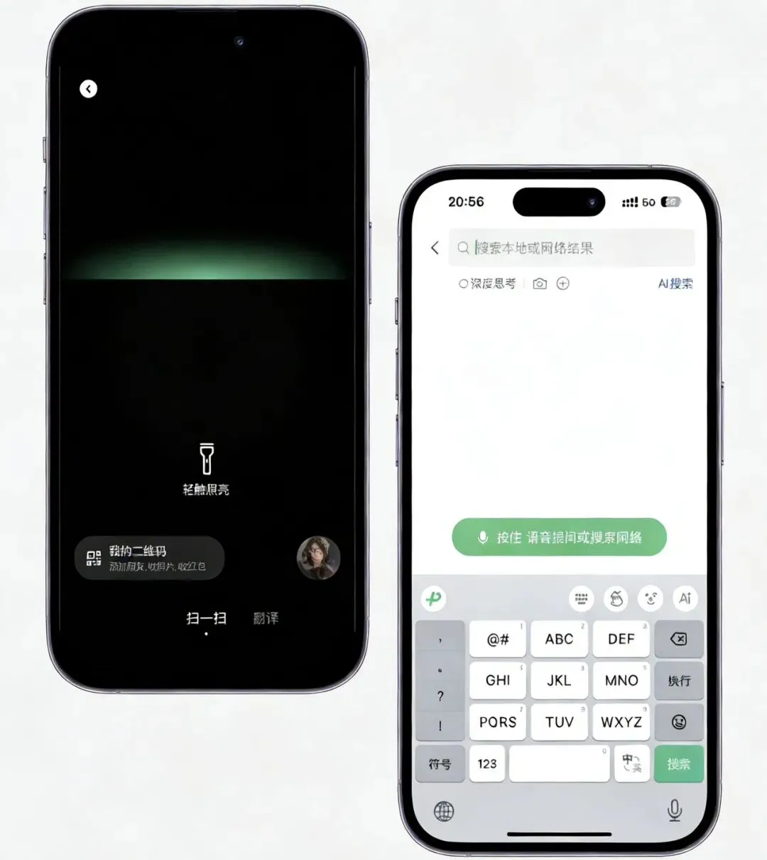 在微信搜索界面里,下方新增了一个「按住语音提问或网络搜索」按钮。