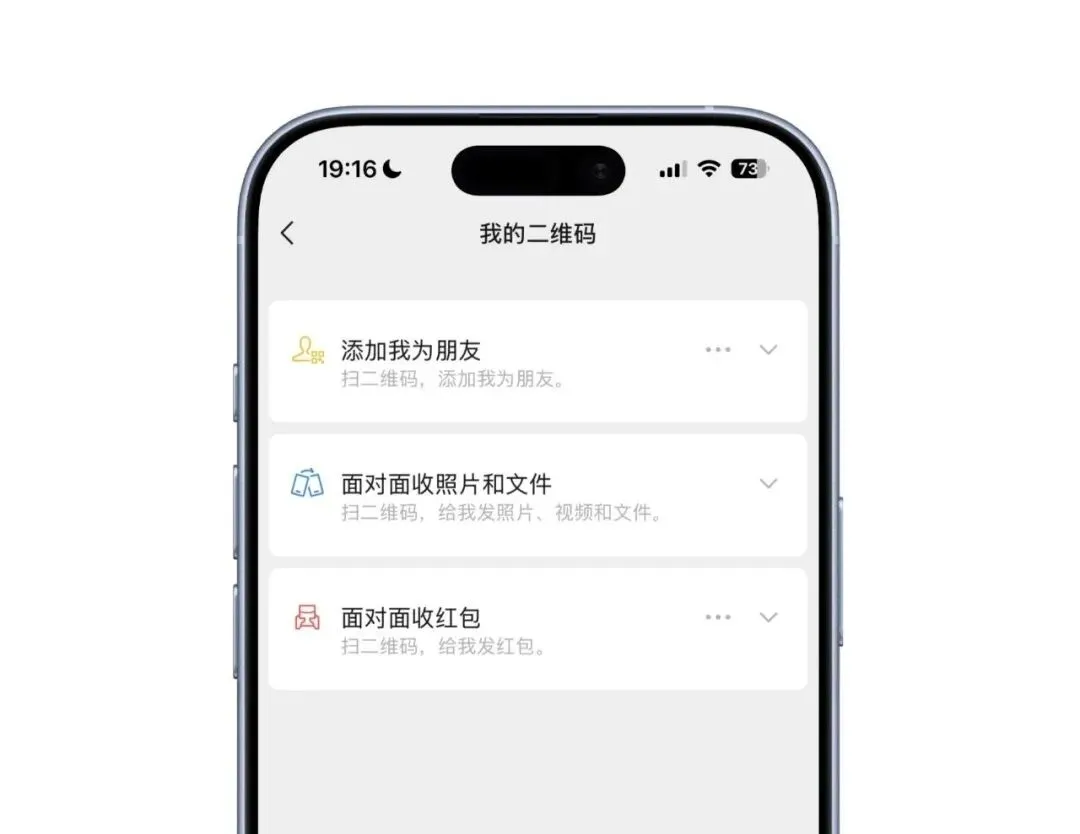 。通过扫码即可与附近好友互传照片、视频和文件,不需要流量,也不需要先加好友,属于一个近距离直传能力。