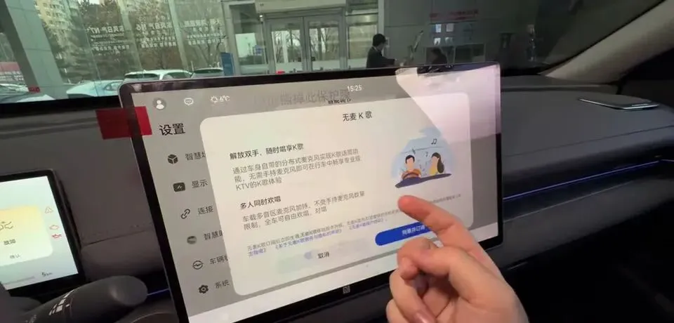 以及一个很“会玩”的功能:无线K歌功能,可以直接给车里唱歌卡拉OK。这玩意儿你说刚需吧不算,但朋友聚会、带娃出门,真能提升快乐值。