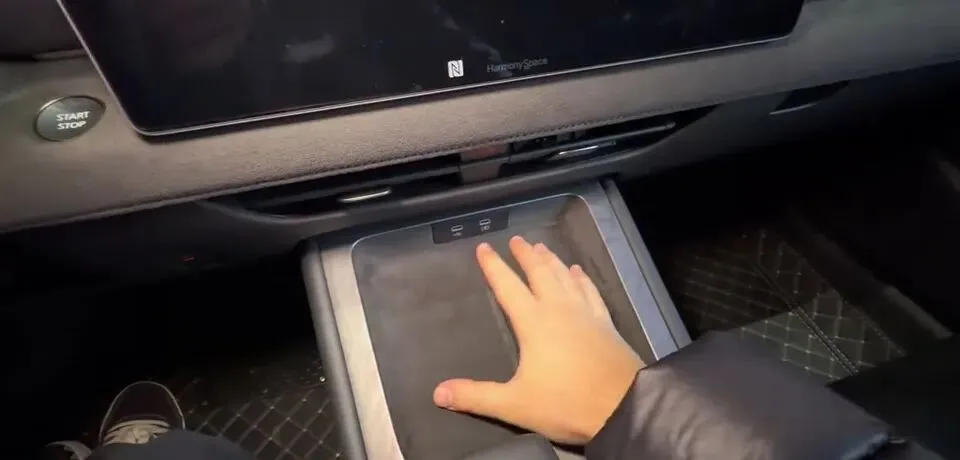 中控台下方的设计很明确就是奔着日常使用去的:有两个放手机的地方,支持手机无线充电,还有降温功能,并且有两个type-c的接口。这一段我建议合资同学都抄一抄——无线充电最怕发烫降速,能“降温”就属于把痛点当痛点了。