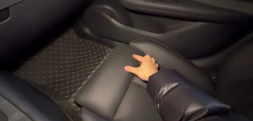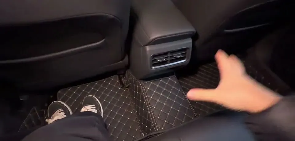 后排空间也给到明确数据感:大概还有两拳多的一个距离。配置上:独立出风口、两个type-c口、三个可拆卸头枕,中央扶手带杯架,还能从后备箱掏东西,属于家用逻辑很完整。