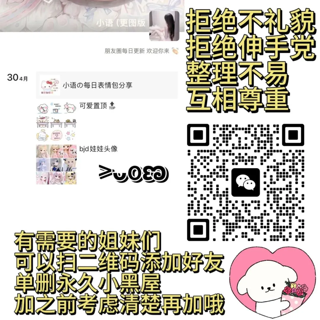 1.由于某些原因,部分资源会在朋友圈更新,更新范围:表情包/头像/壁纸/字体/键盘皮肤的网盘链接,都是自购的,和公众号内容不同重复,资源也会更丰富多样,取图单删屏蔽朋友圈的小宝不要来,扩列勿扰谢谢!