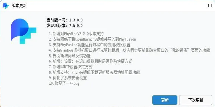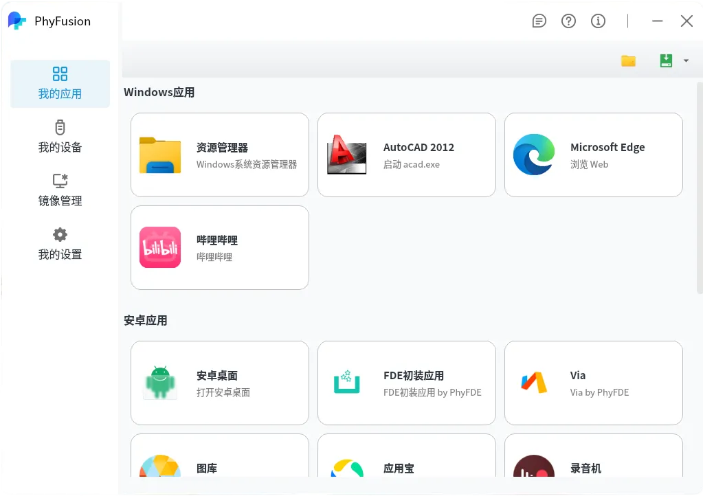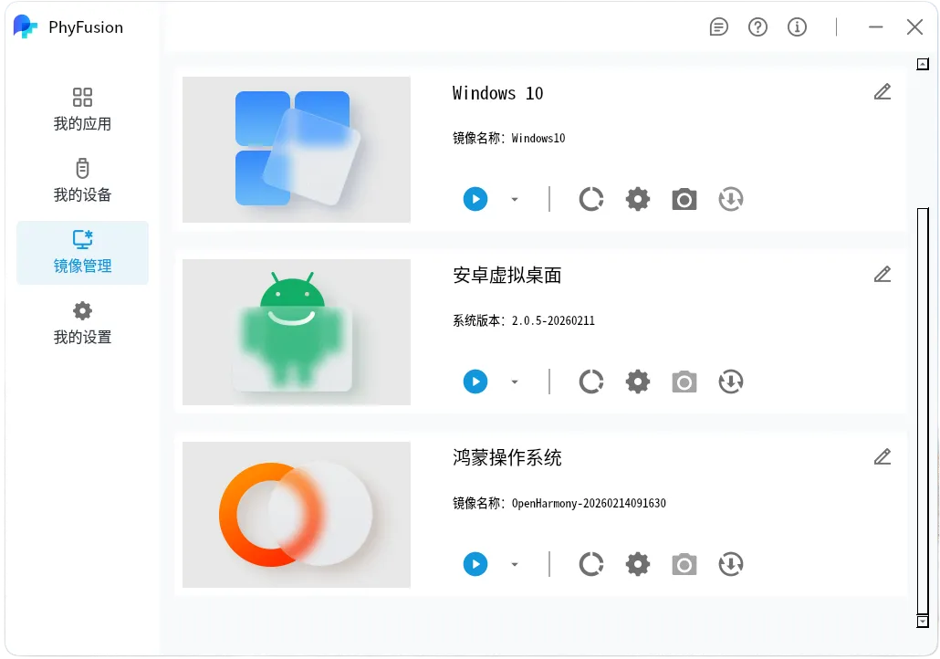 PhyFusion是一款由飞腾官方推出的桌面融合平台软件,其运行在国产操作系统(麒麟、统信等)。近期该软件发布新的版本,新版本增加了安卓和鸿蒙系统镜像管理接口。通过新版本可在国产操作系统上直接运行原Windows、安卓、鸿蒙操作系统下各类生态应用,打破了 Linux、Windows、Android 及 OpenHarmony 等不同应用生态间的壁垒,在一个统一的平台上实现多类型应用的安装、运行与管理,为用户提供前所未有的融合计算体验。新版本特性主要体现在:
