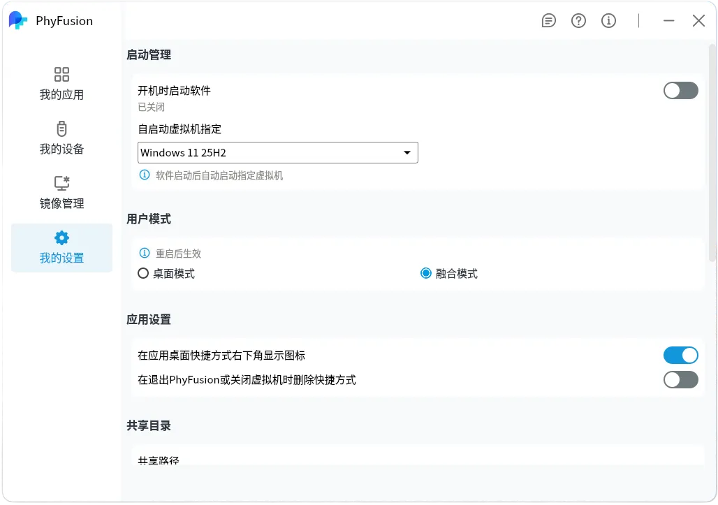 上一版本中,软件有三种模式:桌面模式、窗口模式和融合模式。而新版本中只有两种用户模式,桌面模式和融合模式。窗口模式和桌面模式在运行逻辑上没什么差别,取消掉窗口模式也无关紧要。