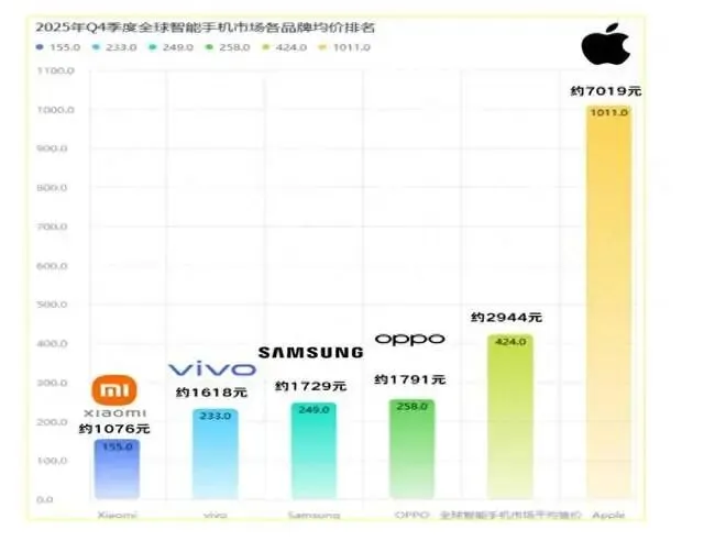 最近有机构统计了2025年第四季度全球手机品牌的平均售价,数字一出来,说实话有点扎心。