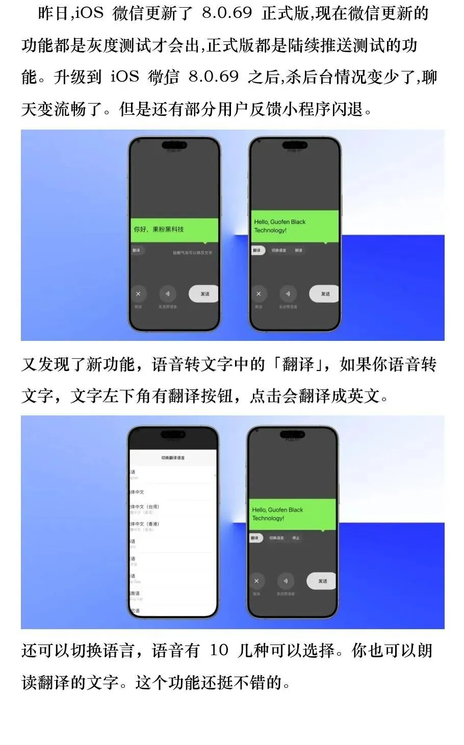 >iOS 微信热更新,语音界面变化了!