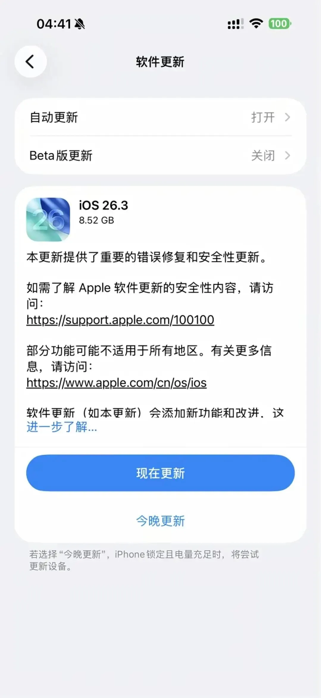 苹果这边也在提示,支持文档写明,大版本更上去,给系统预留 48 小时做索引和优化,这段时间耗电偏高算正常,老机型的电池健康管理也做了强化,峰值性能容量看得更直观。