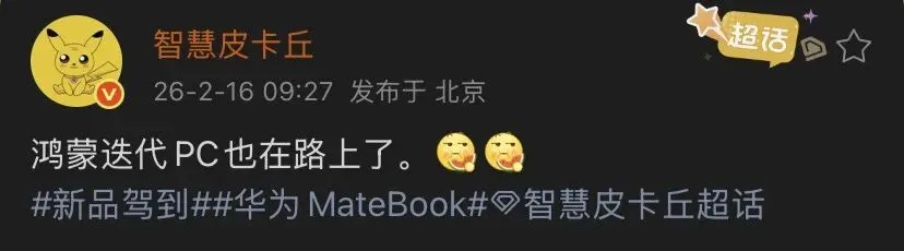 爆料者智慧皮卡丘称,一款新的华为鸿蒙PC也即将发布。虽然爆料未透露任何其他细节,但“也”这个词暗示,除了这款MateBook设备外,该厂商还有更多产品将首次亮相。