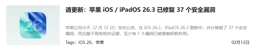 2 月 12 日,苹果发布了 iOS 26.3 正式版更新。作为一个修复为主的版本更新,iOS 26.3 的稳定性自然是大家最关注的。尤其是相对上版系统,iOS 26.3 是否带来了续航上的优化。近期,外网博主 @iAppleBytes 为我们送上了对 iOS 26.3 的续航测试。