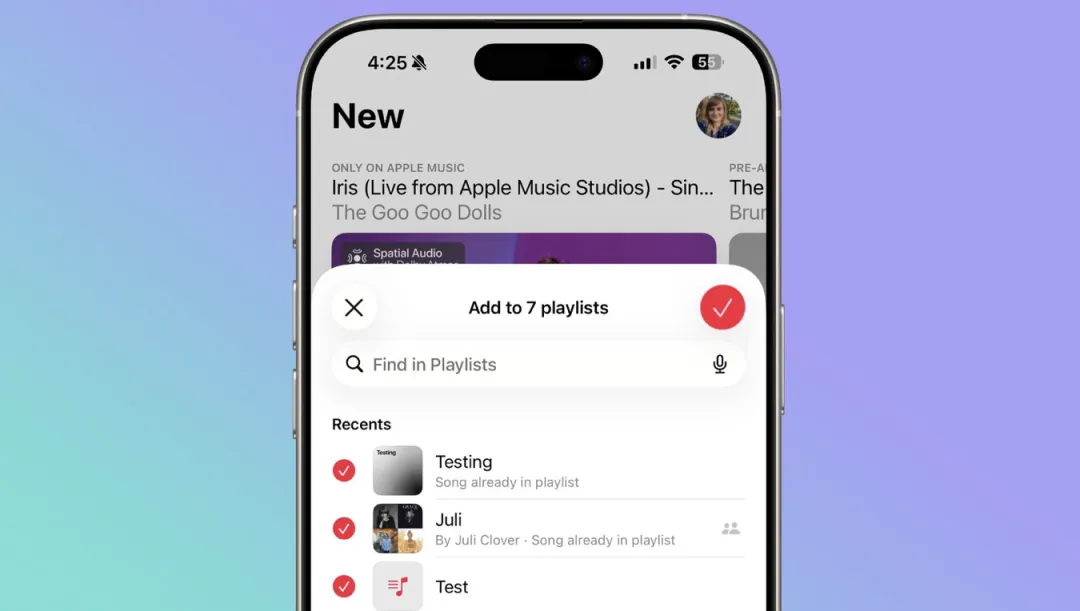 Apple Music 现在允许一首歌同时加入多个播放列表,在添加界面通过列表按钮即可多选,不用再重复操作。
