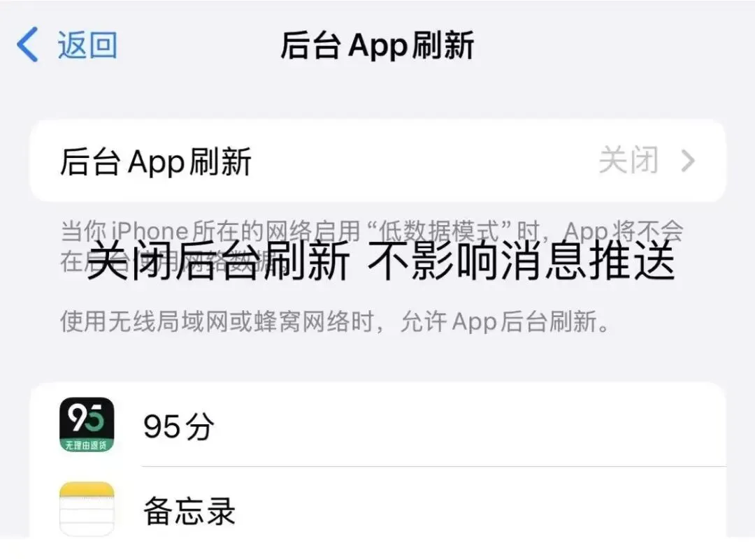 单独开启常用办公App的后台刷新权限(微信、Word、Excel、邮件、浏览器等)