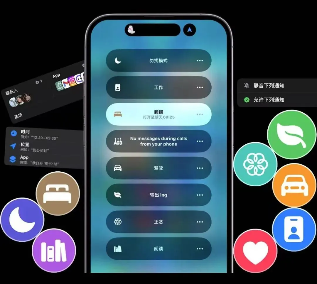 专注模式自定义:按我说的设置一下,只允许工作相关App和联系人推送,其他什么B站、抖音、新闻全都静音,瞬间就能把自己拉回正经工位。