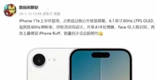 看库克这次的安排,节奏改了,去年那个iPhone 16e挂着刘海屏很多老铁都觉得库克这老小子又在清库存,今年传出来的17e不走那条路了,价格段还在四千附近却把A19塞进来,型号名挂个e,芯片位却不低,外形也把刘海剪掉,整机思路更像往旗舰位置靠。
