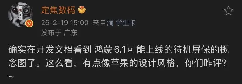 设计风格的“撞车”在科技界屡见不鲜,最终决定用户体验的,往往不是“像不像”,而是“好不好用”。对于鸿蒙6.1的待机屏保,我们不妨多一些期待,少一些先入为主的评判。
