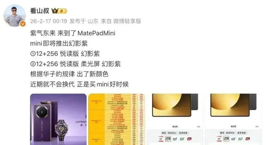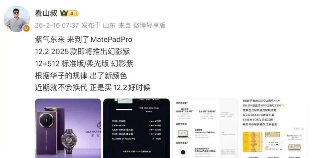 除此之外,博主@看山叔 最近透露了一些关于华为后续平板产品的新消息。