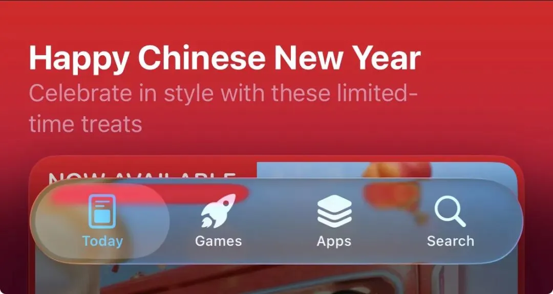 2. App Store的搜索作为一个标签与底栏的其他标签融合在一起了(但是Apple Music的搜索却没有(?