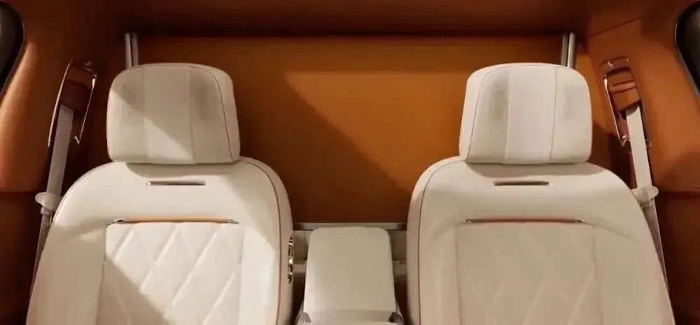 后排中央打造奢华多功能中岛台,集成铝合金折叠小桌板、冷暖杯托、无线充电区、压缩机冰箱,还支持一键静音、一键全黑与指纹密码箱,小桌板自带化妆镜,细节尽显考究。车内搭载创新独立音区技术,通过声学隧道降噪头枕实现自适应声场消除,搭配升降式空间屏风,前后排声音自动隔离,打造私密专属空间。