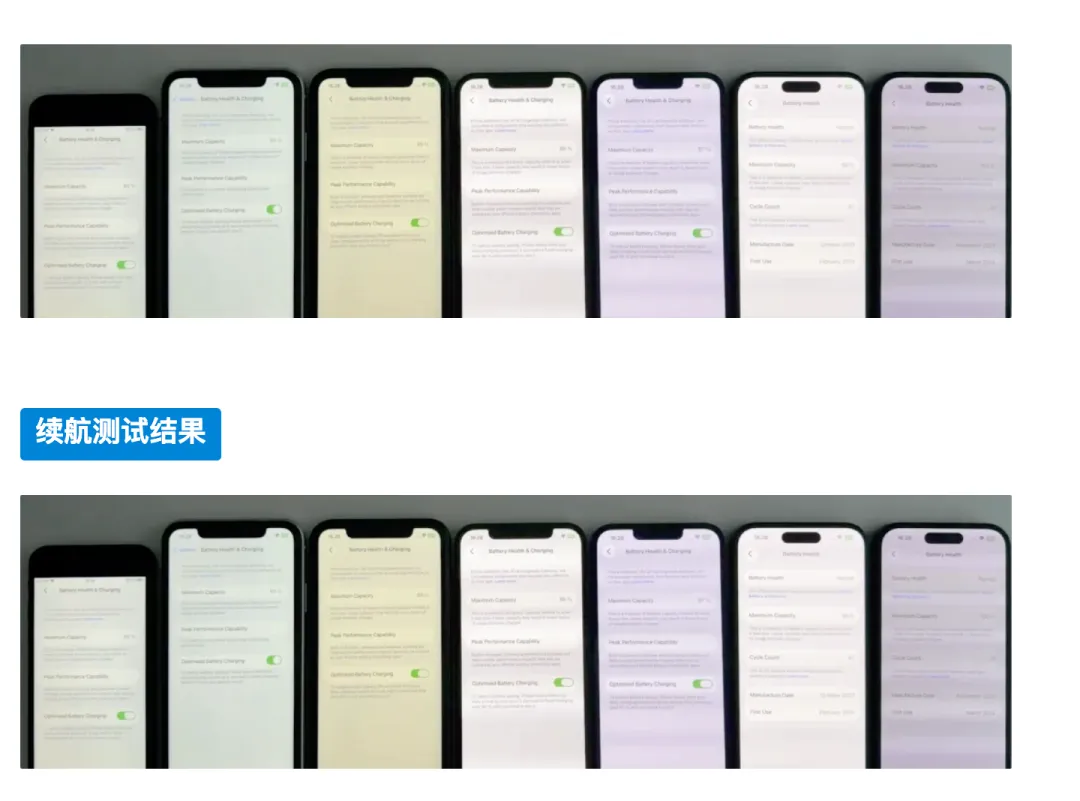甚至连电池健康度都如实记录了,基本都在 84% 到 100% 之间,符合大众的使用现状。