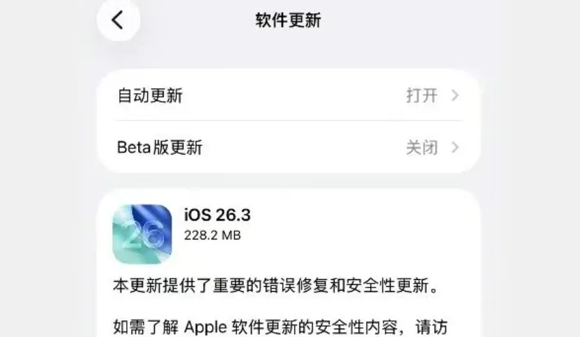 这段时间苹果的节奏有点紧,iOS 26.2.1刚推不满一个月,iOS 26.3又来了,我这边收到了不少果粉的私信,问是现在就更,还是稳在老版本再看两天。